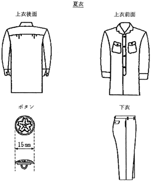 | 製式 | カッター式の長そでとし、ボタン7個を1行につける。