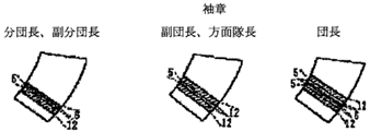 | 袖章 | 表半面に1条ないし3条の金色しま織線をまとう。