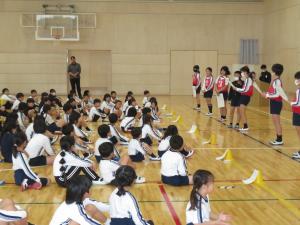 会の中では、1年生が自己紹介をしたり、各班でめあてを考えたりしました。会場となる体育館には、6年生と1年生が手をつないで入退場し、とてもあたたかい雰囲気の集会となりました。