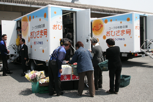 4月20日(水)、生活協同組合コープやまぐちが、5月下旬から実施予定の移動店舗車による商品販売のプレ営業をコープやまぐち長門センターで行いました。この取り組みは、スーパーの撤退や交通手段が少ないなどの理由で、買い物が困難となった高齢者の多い地域を対象に行うもので、市内では通や俵山、日置、油谷の中山間地域などを週1?2回ほど巡回します。 この日集まった組合員は、順番に並んで1?2人ずつ車内に入り買い物を体験。日用品や食品、惣菜など550?600個の商品の中から買う物を選びました。この事業は、県内全域での販売を目標にしていますが、最初は試験的に長門、美祢、山陽小野田、下関といった県西部の市で実施され、利用者の声を聞きながら意見を反映させていく予定です。