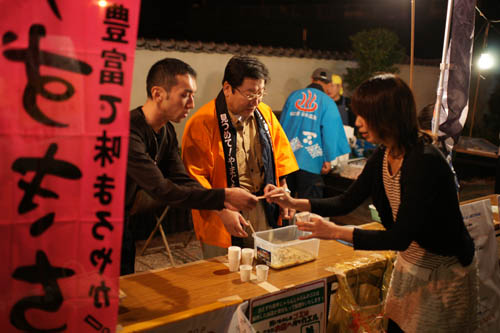 10月6日(土)、湯本音信川河川公園でおとずれ夜市「じゃらんじゃらん」が開催されました。今月は、前日の5日に仙崎旬宣言が発令された「仙崎ぶとイカ(旬のケンサキイカ)」の地産地消pr試食が行われました。 今年最後の開催となるこのイベントには、夕方から地元の人はもちろん湯本温泉に宿泊する人が浴衣姿で訪れ、長門の旬を味わえるよう、仙崎ぶとイカのほかに、長門ゆずきちのジュースや長州黒かしわの無料試食も併設され、長門の味を堪能していました。 また、ステージではアコースティックライブも行われ、深まりつつある秋の夜長を楽しむ姿が見られました。 おとずれ夜市「じゃらんじゃらん」は、次回は来年2月9日にラブ花火イベントとして開催が予定されています。