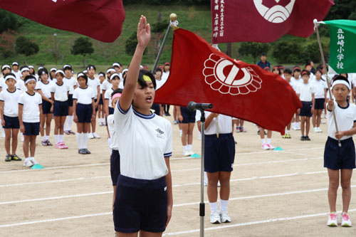 10月12日(金曜日)、ふれあいパーク三隅で第8回長門市小学校陸上記録会が開催されました。 この記録会は、5・6年生を対象に日常の体育活動の成果を競い、自己記録へ挑戦してもらうとともに、他校の児童との親睦を図ることを目的に毎年開催されているものです。 開会式では、来賓として招かれた大西市長が「自己記録に向かって挑戦してほしい。またこの機会に他校の友達を作ってください」とあいさつをしました。 競技は、トラック競技として100m走、60mハードル走、1000m走、400mリレーが、フィールド競技として走り高跳び、走り幅跳び、ソフトボール投げが行われ、参加した児童525人は自己記録を目指し一生懸命競技に取り組みました。 各種目の優勝者は次のとおりです。 【5年生男子の部】・100m走 福田紘斗(日置小) 15秒6・走り幅跳び 伊藤聖将(油谷小) 356cm・走り高跳び 清輔司隆(深川小) 116cm・ソフトボール投げ 坂野尚之(深川小) 48m・60mハードル走 永田洸一郎(仙崎小) 11秒5・1000m走 岡藤海渡(日置小) 3分41秒6・400mリレー 日置小学校 1分02秒4【5年生女子の部】・100m走 大野陽菜(明倫小) 16秒1apple-style-span・走り幅跳び 大野陽菜(明倫小) apple-style-span 359cm・走り高跳び 蔵本奏恵(明倫小) 110cm・ソフトボール投げ 内山亜美(日置小) 44m・60mハードル走 深田恵里(深川小) 11秒3・1000m走 児玉優香(深川小) 3分50秒6・400mリレー 深川小学校a 1分04秒3【6年生男子の部】・100m走 福田怜生(仙崎小) 14秒0・走り幅跳び 萩山晃太郎(向津具小)417cm・走り高跳び 奥隆一郎(向津具小) 130cm・ソフトボール投げ 品川優人(油谷小) 60m・60mハードル走 南野智樹(仙崎小) 10秒2・1000m走 澤村亮太(深川小) 3分19秒4・400mリレー 向津具小学校 59秒4【6年生女子の部】・100m走 田村梨沙(明倫小) 15秒5・走り幅跳び 山根莉加(深川小) 408cm・走り高跳び 出羽七海(油谷小) 120cm・ソフトボール投げ 柳井茜由姫(浅田小) 42mapple-style-span・60mハードル走 山根莉加(深川小) apple-style-span 11秒1・1000m走 米村美紀(仙崎小) 3分36秒2・400mリレー 深川小学校a 1分02秒9 【5年生男女混成の部】・400mリレー 向津具小学校 1分15秒6【6年生男女混成の部】・400mリレー 通小学校 1分05秒6