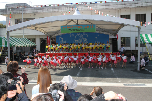 10月21日(日)、三隅公民館周辺を会場に、2012みすみふるさとまつり ~香月泰男が愛した私の地球みすみ~郷土の先賢 村田清風「防長四白」~が開催されました。 この日は朝から大変好天に恵まれ、マーチングバンドや和太鼓の演奏、萩光塩学院高校による書道パフォーマンス、三隅中学校のガールズバンド「ダイブ」の演奏、地元出身の水本諭ライブなどが行われました。 今年は時間を競っていた昨年までとは競技方法が変更になり、抱えて歩いた距離を競うことになった「力自慢!米俵担ぎ選手権」には、小学校低学年から大人まで5部門に17人が参加し、来場者ほぼ全員が応援する中、選手は奮闘しました。 高校生以上男性の部では、米俵2俵(約120kg)をかかえて歩く距離を競い、木村佳嗣さんは4m90cmを歩き優勝しました。 その後みすみ夢抽選が行われ、もちまきでまつりを締めくくりました。 ; min-height: 24px ; min-height: 24px