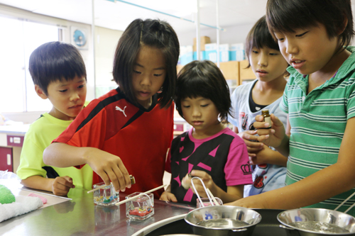 8月22日(土)、三隅農業者トレーニングセンターで、小学生を対象とした体験型イベント「すごいぞ!清風翁『天保の改革』にチャレンジ」が開催されました。 このイベントは、現在、山口県で明治維新150年に向けた取り組みが進められていることにあわせ、維新の礎を築いた人物として伝えられている郷土の先賢、村田清風の「天保の改革」に注目し、紙・ろう・米・塩の生産を奨励し藩の財政再建を図った「四白政策」にちなんだ体験学習として実施されたもので、現在村田清風記念館で行われている「楫取素彦と妻・寿展」の実行委員会が主催しました。 はじめに、村田清風記念館の松浪恒夫館長による「米と蝋について」と題された学習会が行われ、清風が四白政策を実施するまでの経緯や、当時の生活のようすなどが説明されました。 その後、参加した約20人の児童は3グループに分けられ、地元有志で構成された長門市三隅青年団の指導のもと、「紙」では牛乳パックを砕いたパルプ液からはがきを作る「紙すき」を、「塩」では形作ったモールを核とした「結晶づくり」を、「ろう」ではカラーサンドや貝殻などで飾りつけた透明なキャンドル「ジェルキャンドルづくり」を順に体験し、参加者は完成した3つのオリジナル作品を手に笑顔を見せていました。