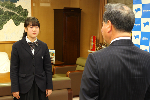 第37回全国高等学校弓道選抜大会に出場する選手の激励会が、12月17日(月曜日)、長門市役所において行われました。