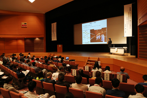 この日ははじめに、「宮崎県におけるHPAI(高病原性鳥インフルエンザ)発生と防疫対応」と題し、宮崎県宮崎家畜保健衛生所の谷口岳さんが講演を行いました。平成28年12月、平成29年1月と同県で発生した際の防疫措置を、発生地の地図や写真を交えて紹介。殺処分や埋却、消毒作業などの工程ごとに、従事者の事故や被害の拡大を防ぐためのポイントが示されました。