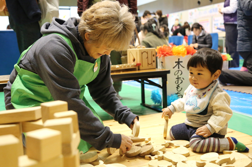 またこの日、軽運動室では「わいわいフェスタ」が開催され、ねんどや木のおもちゃで遊んだり、バルーンアートや手形アートなどを楽しむ親子でにぎわいました。