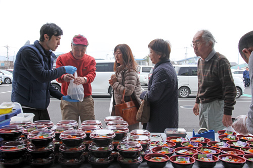 イベントに参加したのは4月に新しく飲食テナントとして入る6店舗のうち、「海鮮丼Ajito」「Turccari(ターカリ)」「晴ル家」の3店舗で、お店のメニューが書かれたチラシを配るなど来場者にPRし、来店を呼び掛けていました。また、「海鮮丼Ajito」と「Turccari」の2店舗は試食を用意。海鮮丼とカレーそれぞれ200食分がふるまわれ、センザキッチンを訪れた来場者はそれぞれのメニューを味わっていました。