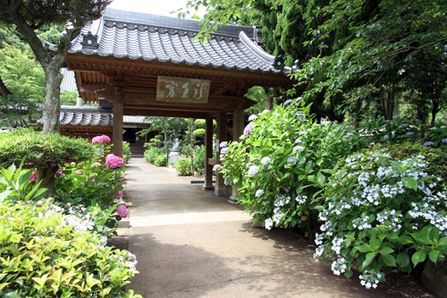 別名「アジサイ寺」とも呼ばれる油谷向津具地区の向徳寺のアジサイが見ごろを迎えています。