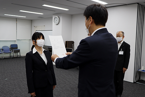 10月1日(木曜日)、長門市役所で新規採用職員辞令交付式が行われました。
