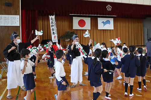 子どもたちに感想をたずねると「たのしかった」「舞ってみて、神様のための舞だということを感じました」「またやってみたい」など前向きな答えが返ってきました。